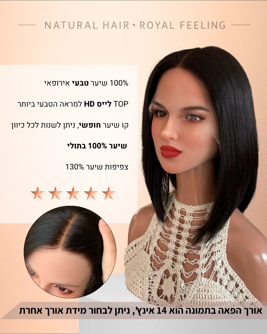 The wig is made of 100% European human hair ✨ that has been Coloring only – without any additional chemical processes . The hair maintains its original softness, shine and durability over time 💎